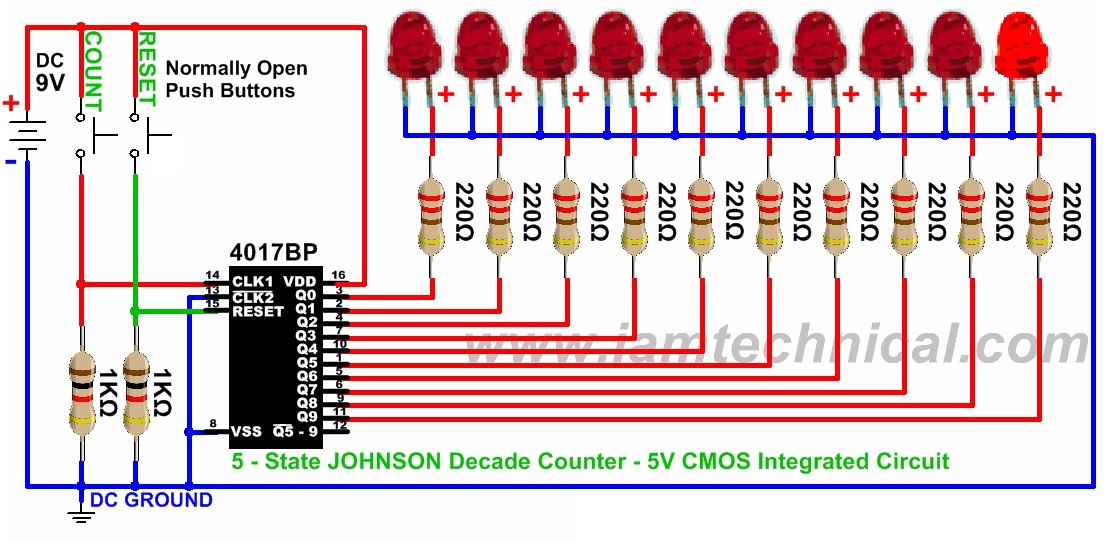 4017 Example Circuit - 20 Led Sequencer Chaser Using 555 4017 Ics Circuit Diagram / Instead of running an entire cycle i want it to .